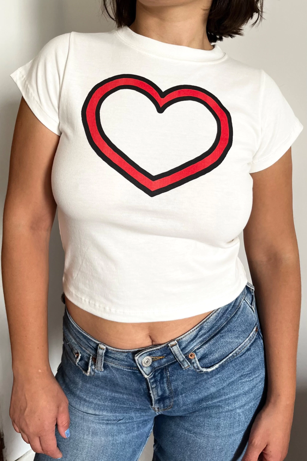 Esta baby tee está confeccionada en jersey 100% algodón color off-white, cremita, que le da ese toque vintage tan soñado, de cuello redondo, al cuerpo y largo a la cintura. Estampada con ilustración especialemnte creada para TURKS, por la artista plástica Luxy Shanghai, amiguísima y confidente de esta casa. La moldería es una delicia, se podría decir que es casi como una pieza de sastrería de lo hermosa que queda puesta.